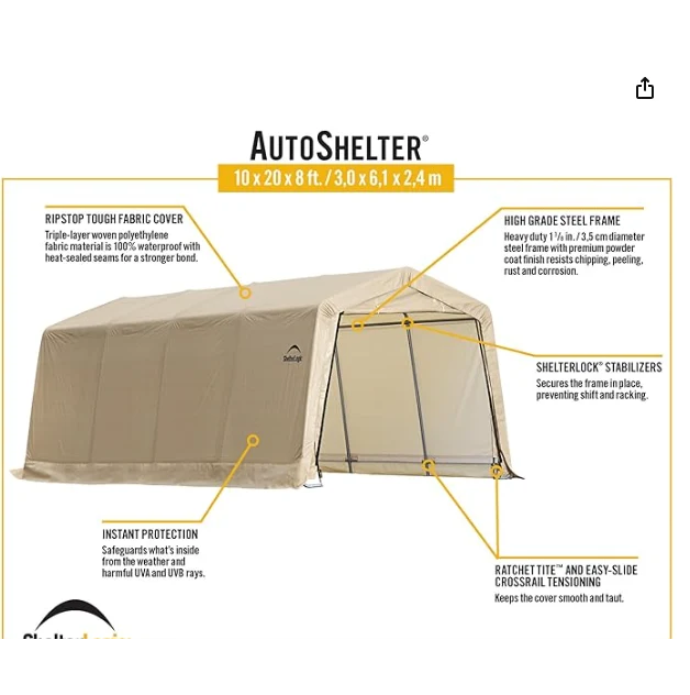 Ĉia-vetero-aŭta ŝirmejo Canopy.Locks malsupren kaj kvadratas kadrojn por komenca kaj kontinua kadro al ŝtofo.