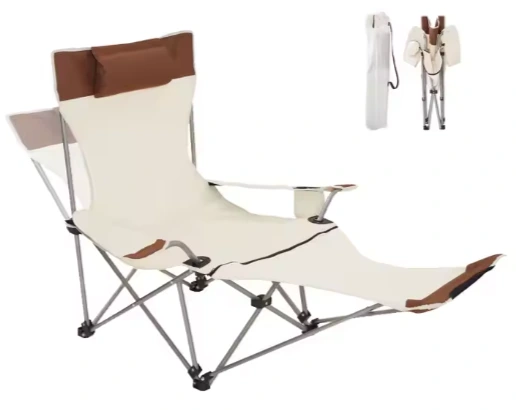 Tornistro Faldebla Strando -Seĝo Subĉiela Lounger Portebla Faldebla Klariga Strando -Kampadejo Subĉiela Faldebla Seĝo Kun Footrest kaj Stokada Sako