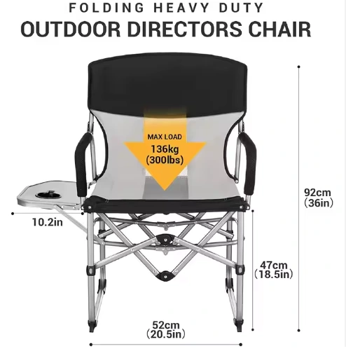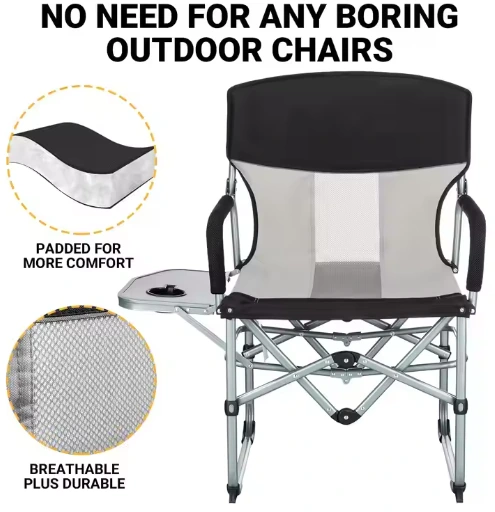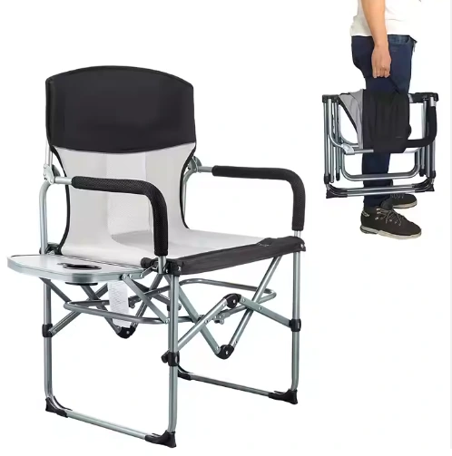 BBQ -tendara piknika seĝo, faldebla kampadejo, pezaj porteblaj direktoroj seĝoj por plenkreskulo kun flanka tablo -maŝo malantaŭa kompakta stilo por subĉiela