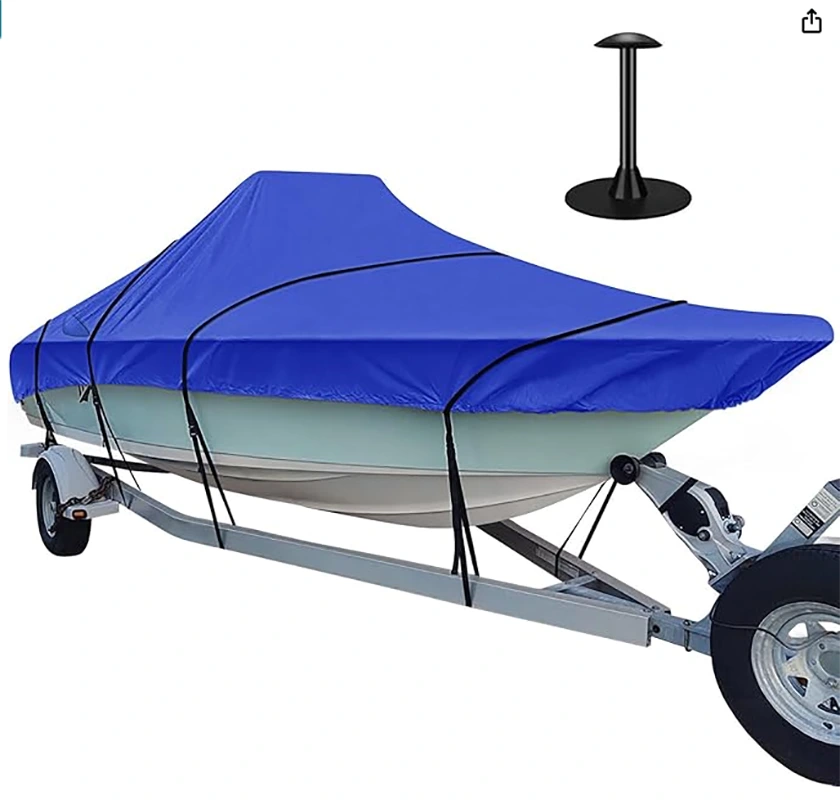 Trabo-Larĝo Akvorezista Boata Kovrilo Jaĥta Kovrilo, Trailerebla Boata Kovro, 600D Peza Boata Kovro Konvenas V-Hull Centra Konzolo-Boato 20ft-22ft Longa kaj Fasko-Larĝo ĝis 116in, Alteco de Glaco ĝis 30in, Boatkovrilo Subtena Poluso Inkluzivita.