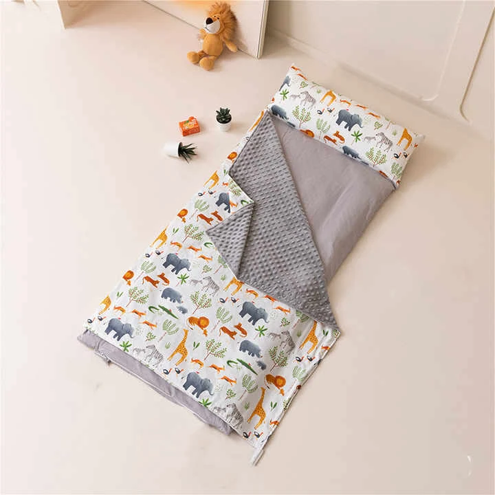 Blua Infana Kampara Nap Sako La rulpremita dezajno permesas al la mato vojaĝi kun facileco same kiel la konvenaj fermilaj fermiloj kaj la portanta tenilo.