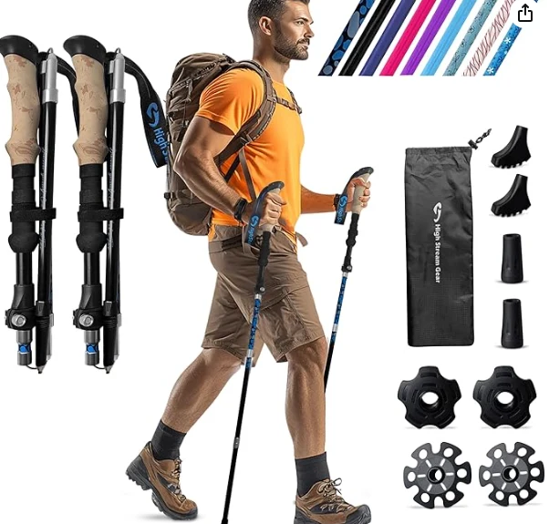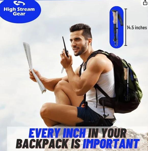 Migrantaj stangoj por Hikiers kolapsas ĝis 37cm (14,5 coloj) kaj pezas nur 10 onzojn ĉiu lasante vin loki por viaj esencoj kaj persona ilaro.