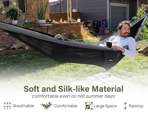 5. Facila riparado, simple riparu la hamakon per 2 ligaj kordoj kaj ligu la kordojn al arboj aŭ poloj.