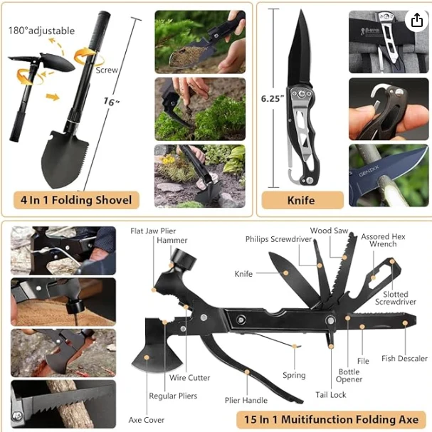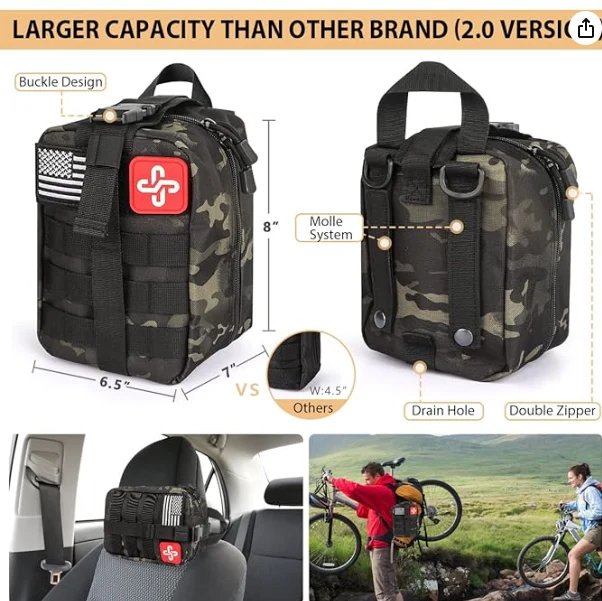 Molle Subĉiela Unua Helpo -Saketo inkluzivas entute 250pcs -multvalorajn postvivajn ilojn. Ĝi enhavas la plej popularajn postvivajn ilojn kaj ilojn, ankaŭ unuan helpan ilaron, kiu sufiĉas por trakti familion aŭ grupon de amikoj en krizaj cirkonstancoj.