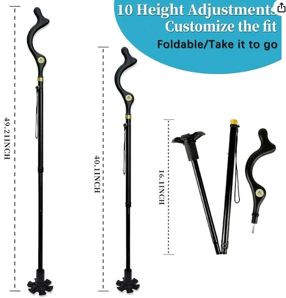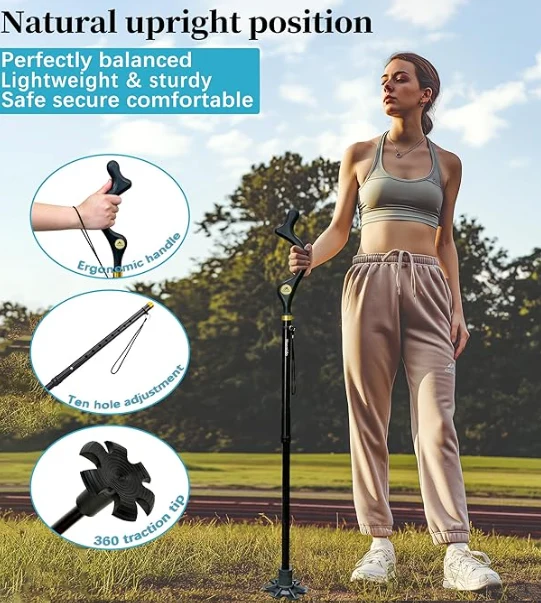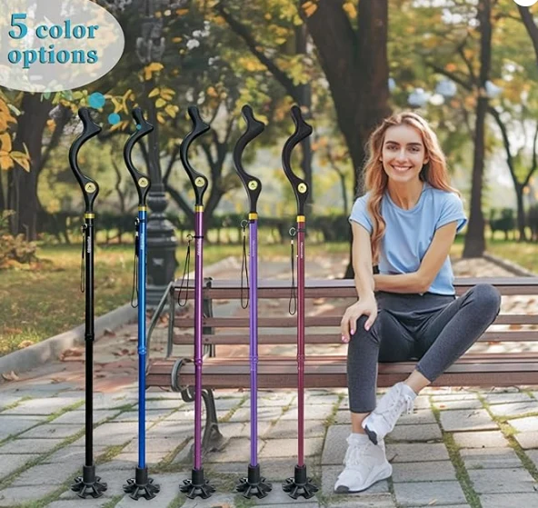 Subĉiela grimpanta ekipaĵo marŝanta poluso, marŝanta kano faldebla por viroj kaj virinoj maljunuloj por ekvilibro, memstara faldebla kano, alteco alĝustigebla kontraŭglito malpeza alojo marŝanta bastono kolapsebla por vojaĝado moviĝema helpo