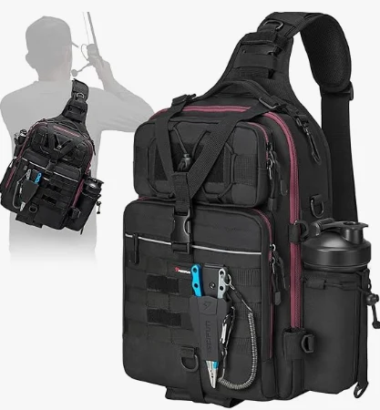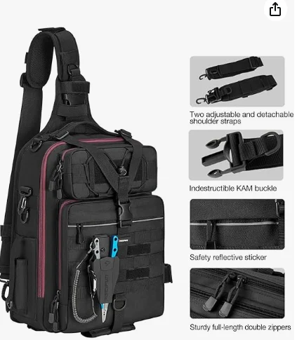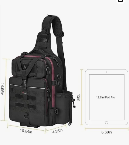 Delokeblaj ŝultraj rimenoj faciligas uzi ĉi tiun sakon kiel svingan ŝultran sakon, tornistron, manplaton, brustan sakon, fiŝkaptan sakon aŭ vojaĝan sakon. Kun du vergaj zonoj por teni viajn vergojn, la ĉefa rimeno povas esti etendita ĝis 51,2 '', dum la asociita rimeno povas esti etendita al 36,2 ''