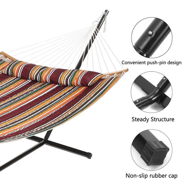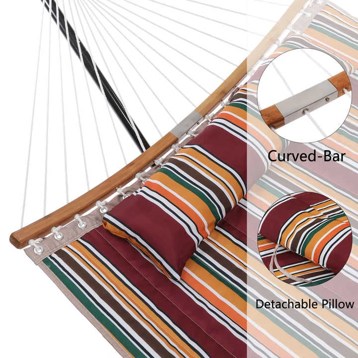 Portebla nilona tendaro Hammock. Ĉu ĝi estas amikoj aŭ familio, ĉi tiu hamako estas multvalora, funkcia kaj unika maniero doni al ili novan sperton pri komforto kaj kvalito. kaj ekstere.