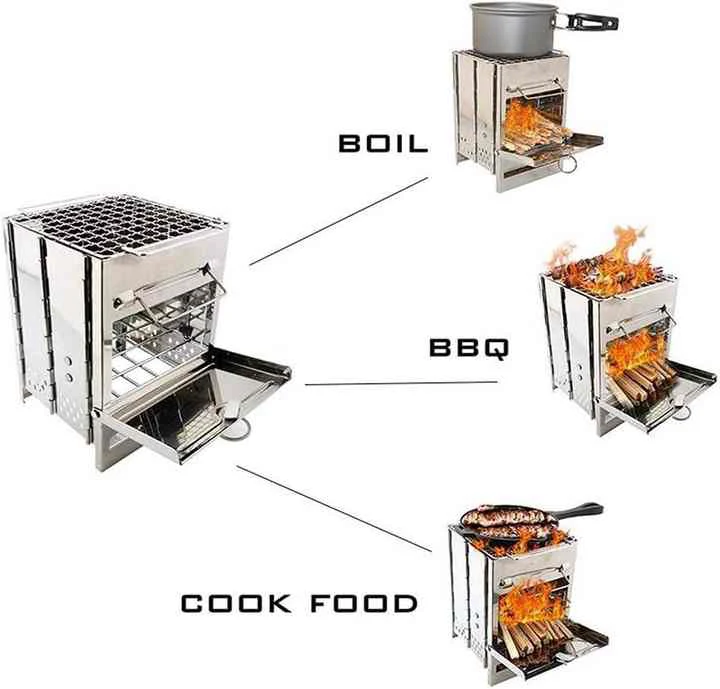 Neoksidebla ŝtala mini -kaseda forno, farita el neoksidebla ŝtalo, eblas etendi la brullignon raketan stufaĵon. Estas tre oportune daŭrigi la vojaĝon.